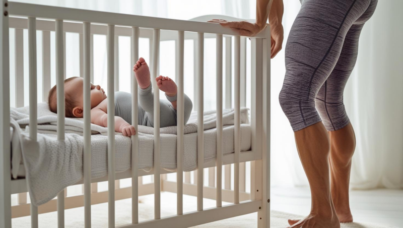 * "Crib-Side Calf Raises": While you’re soothing a fussy baby in their crib, or waiting for them to drift off to sleep, stand on your tiptoes for a few seconds, then lower your heels. Repeat. It’s a subtle way to work your calf muscles without needing any extra equipment or space.